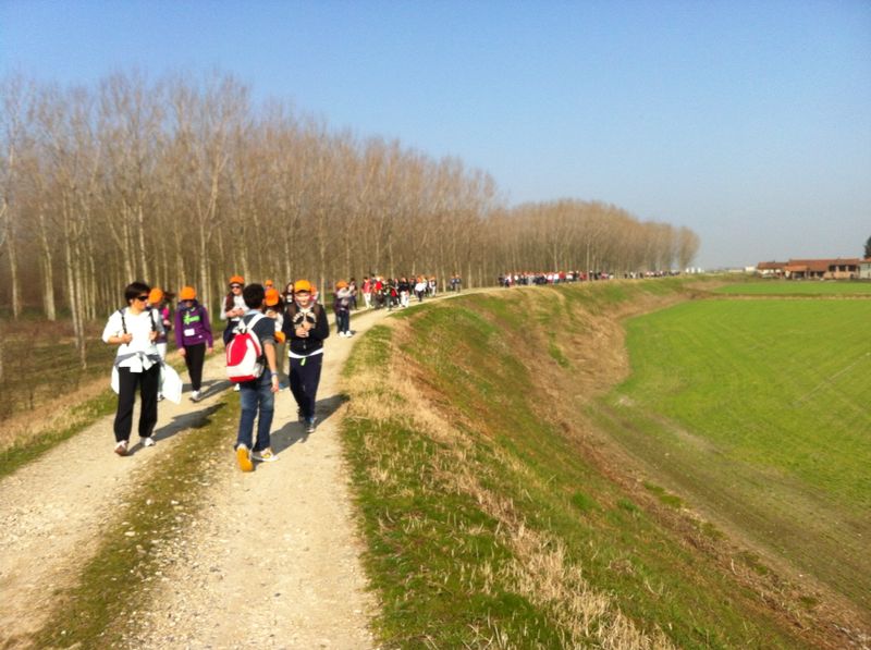 Entusiasmo ha accomunato docenti e alunni delle classi seconde lo scorso giovedì 13 marzo per la via Francigena in direzione città storica di Palestro. La bella giornata di sole ha fatto da scenario ad una suggestiva passeggiata lunga 10 km per le risaie ancora incolte e voluta dal docente di scienze, prof. Giovanni Michelone. I ragazzi hanno potuto, lontani dai banchi, per un’intera giornata stare a contatto con la natura, marciare a ritmo di canti; stupirsi, alcuni, alla vista di cavalli che scorrazzavano nelle cascine; o semplicemente camminare accanto agli amici, non per forza compagni di classe, ed approfittarne per fare una chiacchierata. A chi si lamentava, perché ormai stanco, alla domanda: “ ancora quanto manca?” venivano in soccorso gli accompagnatori, dei veri pellegrini della via Francigena, che avevano sempre la risposta precisa, in quanto alcuni di loro possedevano dei moderni bastoni muniti di display contapassi. Giunti a Palestro, gli studenti hanno potuto visitare la torre merlata, data in gestione dal comune ad un palestrese che ne ha fatto un suggestivo e spartano ostello per i pellegrini; il comune, dove ad accoglierli è venuto il primo cittadino, Maria Grazia Grossi; che ha spiegato loro perché Palestro dal 2005 è considerata una città nonostante i pochi abitanti ed ha illustrato i quadri appesi nella sala consiliare che raffigurano le scene più suggestive della battaglia di Palestro, combattuta nel 1859 contro gli austriaci. A pranzo il parroco della cittadina storica, don Gino, ha aperto le porte dell’oratorio e qui i ragazzi hanno mangiato la panissa offerta dalla Pro loco e giocato, sotto la vigilanza dei docenti e della preside, abbattendo i muri delle loro classe; infatti, sul campo di pallavolo e calcio esisteva solo la Scuola media Gaudenzio Ferrari. Ultima tappa, prima di tornare a casa, soddisfatti della bella esperienza, è stato l’Ossario di Palestro, luogo in cui sono custoditi i resti di chi ha combattuto una parte importante della seconda guerra d’indipendenza; qui i ragazzi hanno appreso, attraverso il racconto dello storico, il Signor Pierangelo Ubezzi, una pagina di storia che approfondiranno il prossimo anno.
