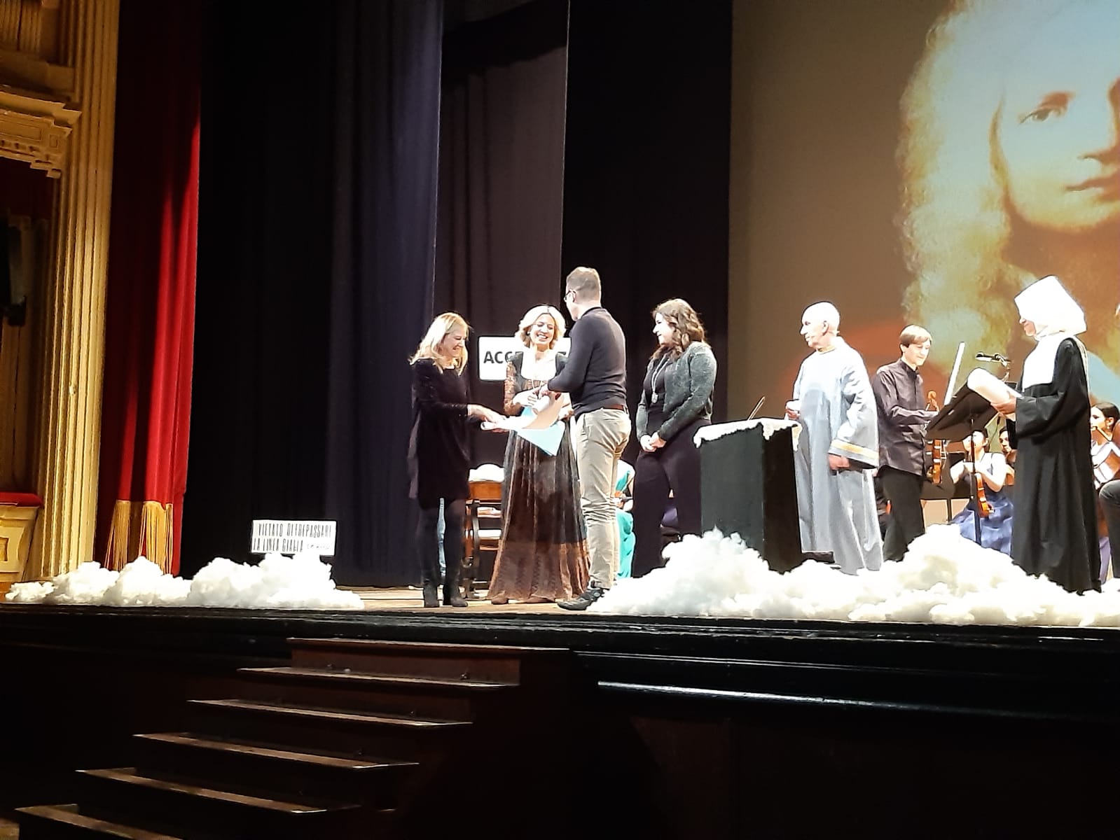 Al termine dello spettacolo la Direttrice artistica della Camerata Ducale ha annunciato i nomi delle due scuole vincitrici: 1° POSTO PRIMARIA CARLO ANGELA CLASSI 5A E 5B premio da 250,00 euro 2° POSTO CLASSE 2A della Secondaria di Primo Grado FERRARI euro 150,00